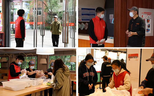 校团委青年志愿者服务团积极响应号召,组织志愿者们坚守在食堂、快递站等区域,负责维护食堂秩序、体温测量,有效疏通人员流动,避免了师生在公共区域扎堆拥挤的情况,为师生的生命安全保驾护航。