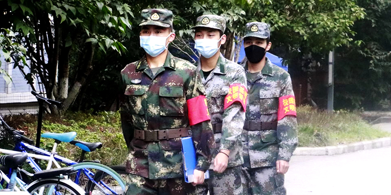 “疫情就是命令,防控就是责任,作为一名退伍军人,我必须挺身而出,站在校园的第一道防线上。”管理学院2020级学生李江珊曾服役于第七十六集团军某陆航旅,在此次疫情防控工作中,她主动报名疫情防控志愿者,负责定点警戒执勤。面对严峻复杂的疫情形势,学校40多名退伍大学生士兵闻令而动、积极响应号召,主动请缨成为疫情防控志愿者,在党委武装部的组织安排下,他们坚守在疫情防控第一线,一身迷彩军装成为校园一道亮眼的风景线。