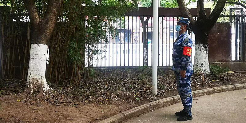 退伍大学生士兵志愿者连队分为巡逻组、执勤组。巡逻组主要负责防护提示、疏通人流、确保道路通畅等工作,在维护校园防控秩序起着重要作用;执勤组在校医院、综合篮球场、弘毅体育馆、行健体育场等地点都设有执勤岗位,负责定点警戒的志愿者实行轮班制,一天两班、一班两个半小时,制止私自送、取外卖和快递的行为,有效杜绝了潜在的疫情传播风险。当其他同学奔向食堂取餐或回宿舍休息时,志愿者们仍然毫无怨言地坚守岗位。