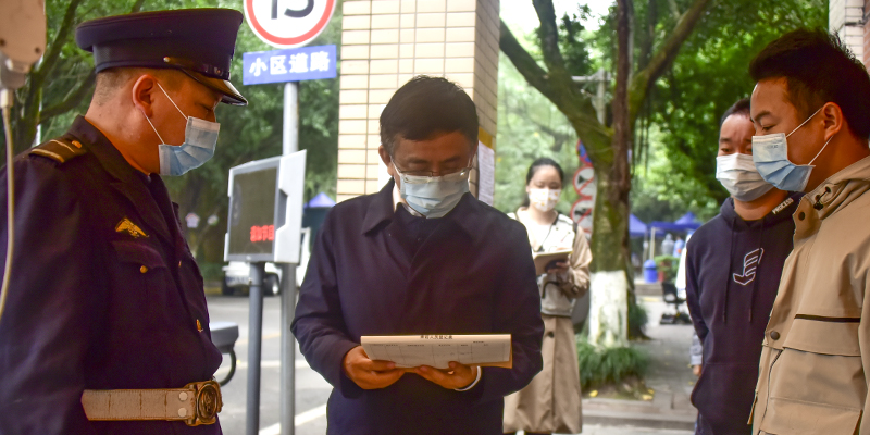 李柳柏一行先后前往学校集贤雅舍门岗、鉴湖环道、聚仕兰庭物业服务中心、南苑食府、学校南门与东门围栏、快递服务中心等重点区域进行检查。在听取了当前疫情防控工作情况汇报后,李柳柏对外来车辆进出、教职工进出、物资采买、食品安全、门岗管理服务等提出明确要求,并结合实际情况再部署、再落实,确保校园疫情防控工作平稳进行。