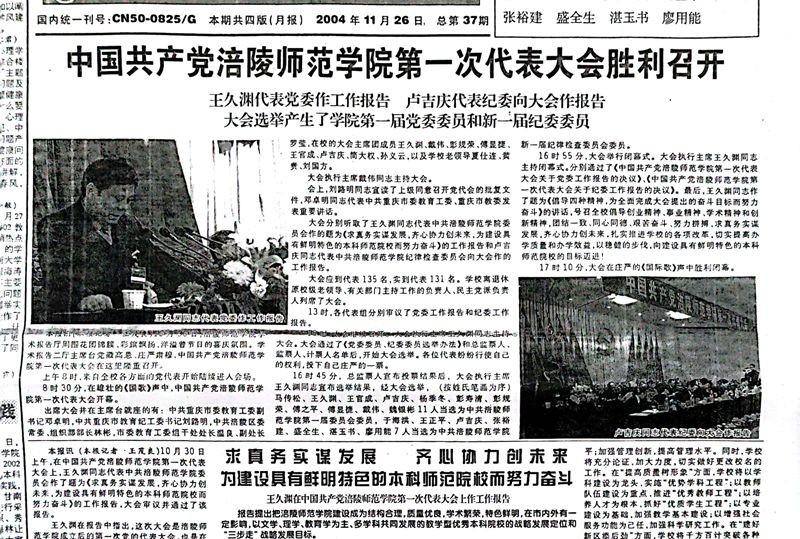 时任党委书记王久渊作题为《求真务实谋发展齐心协力创未来——为建设具有鲜明特色的本科师范院校而努力奋斗》的工作报告,报告提出把涪陵师范学院建设成为结构合理,质量优良,学术繁荣,特色鲜明,在市内外有一定影响,以文学、理学、教育学为主、多学科共同发展的教学型优秀本科院校的战略发展定位和“三步走”战略发展目标。