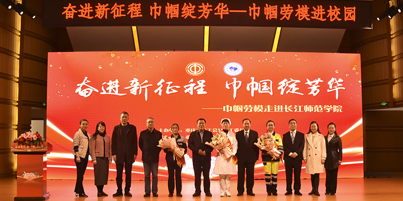 3月15日,“奋进新征程 巾帼绽芳华——巾帼劳模进校园”宣讲活动在我校音乐厅举行。全国劳动模范杨菊平、重庆市劳动模范黄容、重庆市第六届先进工作者秦亚敏讲述了她们以实际行动诠释劳模精神、劳动精神、工匠精神的故事,赢得全场观众的热烈掌声。市总工会一级巡视员陈刚,我校党委书记黄大勇、党委副书记戴玄,涪陵区总工会党组书记、常务副主席熊国勇,师生代表出席活动。副校长向小川主持活动。