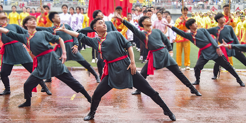 各二级学院代表队结合学科专业特点,精心准备了展示内容。体育与健康科学学院展示内容融入剑术、拳术、九节鞭,高难度的武术动作让现场观众叹为观止,不到3分钟的表演现场响起了10次掌声;管理学院方队用情景表演展现了学院立足“一山两江”,聚焦区域旅游行业发展的特色,更声情并茂地演绎了土家族摆手舞;音乐学院方队高举“中国龙”,精彩的器乐表演、极具民族特色的舞蹈尽显青年学子们的风采;长江科创学院学子们手持“飞机”,现场模拟起飞过程,展现了同学们对科创与实践的热情和信心……