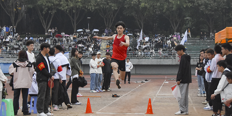 短跑、长跑、接力跑、跳高、跳远、三级跳远、铅球……运动员们如弦上的箭、蓄势待发,他们奋力拼搏的那一刻,尽是长师人势不可挡的蓬勃力量。当运动健儿们冲刺终点时,场上的观众们都摇起手中的加油棒和拍手器加油呐喊。呐喊声、欢呼声融合在一起,为运动员们一次次的奔跑、跳跃、投掷、跨栏注入力量,运动员矫健的身姿在阳光下熠熠生辉,体育场记录下属于青年学子们的拼搏身影。