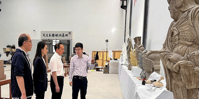 黄大勇一行先后走访了大足雕刻创业孵化园、大足石刻文创园展厅、川渝石刻文创产业综合实训基地、莲山艺术基地等单位,实地考察了园区及入驻企业在园区运营管理、产品研发、人才需求、实习就业等方面情况。