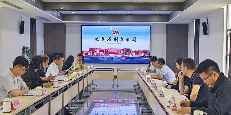 黄大勇向大足区政府对此次调研的高度重视、支持和帮助表示诚挚感谢。他介绍了我校办学特色、学科专业水平、科学研究能力、服务地方贡献等方面情况,并结合大足文创产业园在雕塑艺术、工艺美术、数字文创、文化旅游等四大产业的规划布局,提出了文创产业高层次人才培养、石刻文化资源保护与活化、文旅高端智库建设等合作方向。双方交流融洽,初步达成合作意愿。