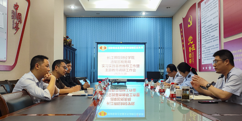 财经学院教师第一党支部到涪陵区税务局实习实践基地开展主题教育调研,结合学科专业特色,调研考察地方税务行业发展、“税直达”涪陵高新区实验室项目的开展情况,以及新时代企事业单位对财务人才的需求,思考人才培养质量提升的努力方向。在座谈会上,双方负责人均表示,希望能进一步拓展合作领域,深化产学研融合,在政策研究、课题合作、人才培养等方面取得新的突破。