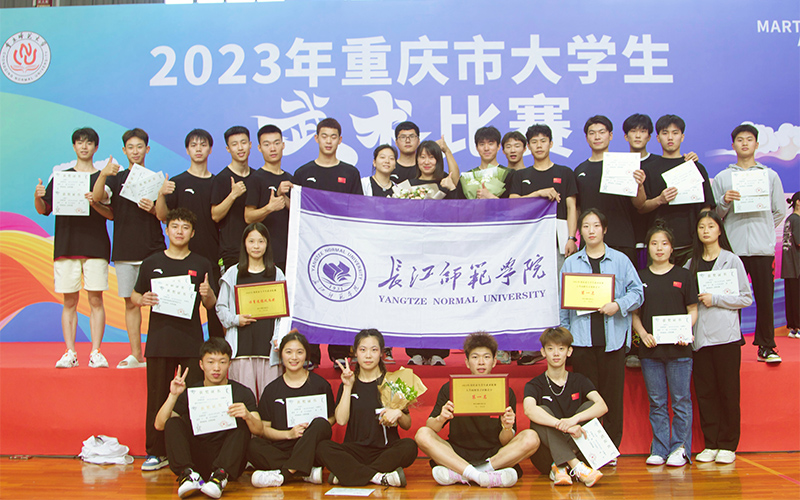 日前,由市教委主办的2023年重庆市大学生武术比赛在重庆师范大学举行。我校武术代表队在比赛中荣获丙组女子、男子团体第一名,单项冠军17个、亚军14个、季军9个,武术队教练员获得优秀教练员称号。