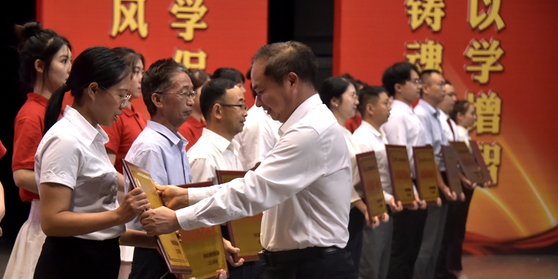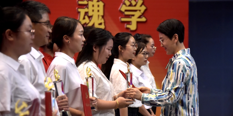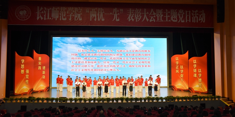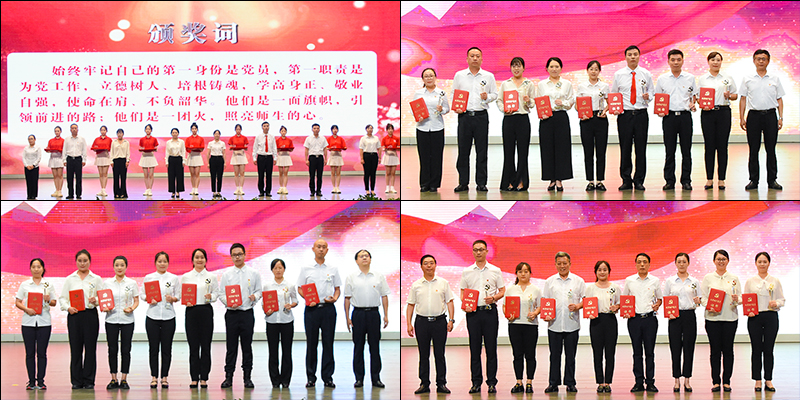大会表彰了41名优秀共产党员、27名优秀党务工作者、12个先进基层党组织。党员干部、师生党员代表登台,集体诵读习近平总书记关于教育的重要论述以及党的二十大报告节选,践行“强国有我 请党放心”的铮铮誓言。活动融表彰、诵读、主题党课和重温入党誓词于一体,感染力强,全场师生都接受了一次崇高的党性洗礼。