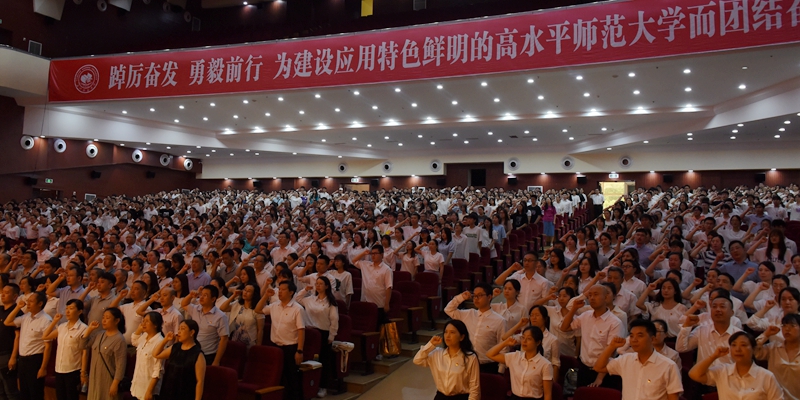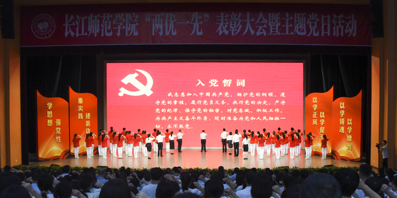 6月30日下午,拏云学生活动中心气氛庄严热烈,学校隆重举行“两优一先”表彰大会暨主题党日活动。在全党深入开展学习贯彻习近平新时代中国特色社会主义思想主题教育之际,党委书记黄大勇讲授专题党课,全校1000余名党员佩戴党员徽章、身着正装重温入党誓词,接受主题党日的崇高洗礼,庆祝伟大的中国共产党成立102周年。