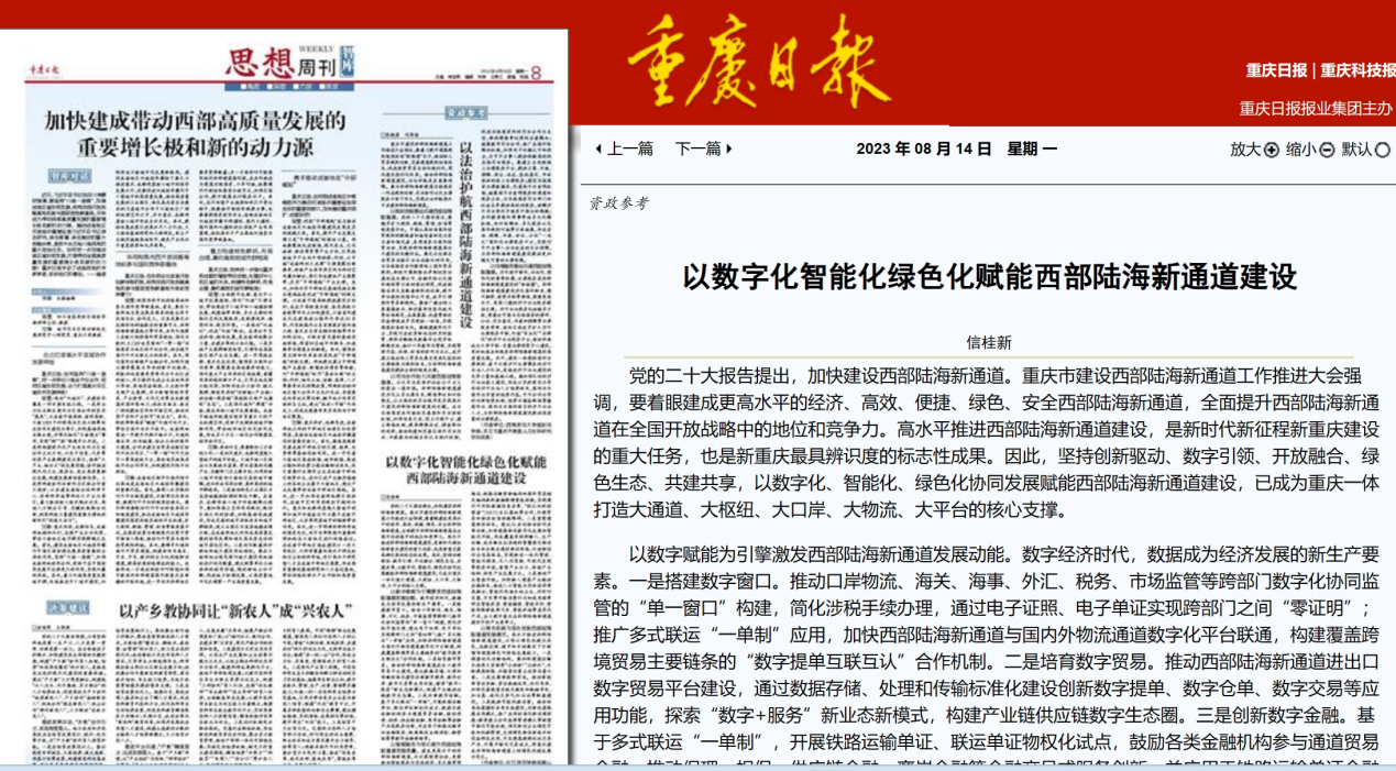 链接:以数字化智能化绿色化赋能西部陆海新通道建设·重庆日报数字报 https://epaper.cqrb.cn/cqrb/2023-08/14/008/content_rb_320652.htm