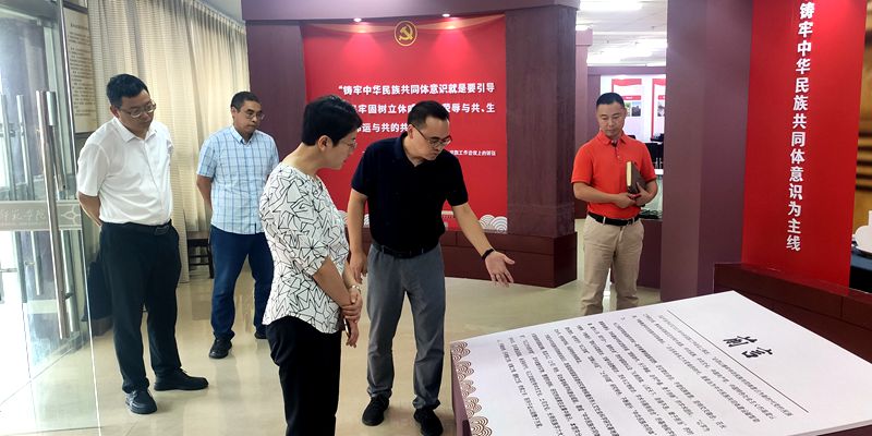 中华民族共同体研究院负责人围绕评估准备工作、基地建设情况作汇报。会前,杨燕滨一行走访参观了中华民族共同体知识普及馆。