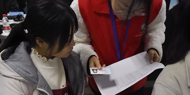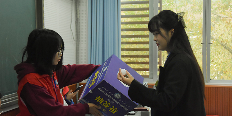 每个参赛选手都要经过严格的检录,随机抽取参赛序号、模拟上课题目、即席演讲题目,所有程序公开透明、公平公正,有序进行。
