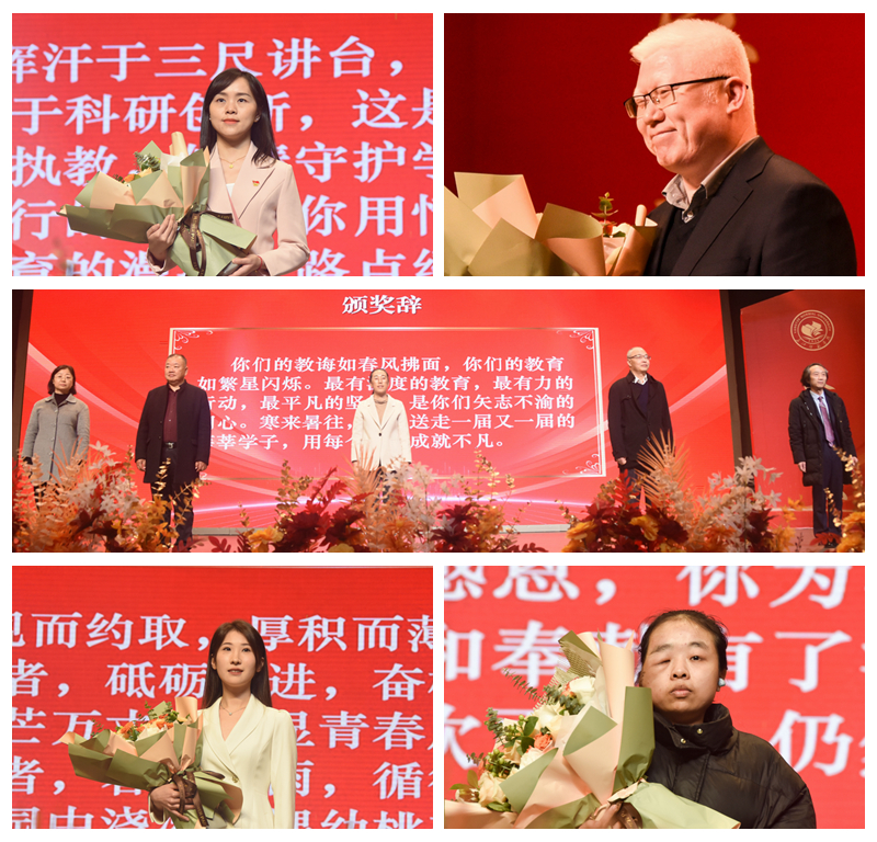 现场为获得“感动长师”校园人物的个人、集体献花、颁奖。