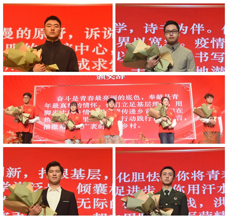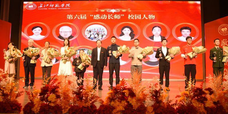 现场气氛热烈。事迹展示短片生动鲜活,依次呈现了 “感动长师”十大校园人物:以爱为基育英才、以行动创佳绩的彭甜媛老师;鹤发银丝照日月、丹心热血沃新花的杨世显老师;忘我奉献二十载、潜心育人结硕果的物理专业教学能力训练团队;勤学苦练吹号角、喉舌之力耀青春的李任乐天同学;勇斗病魔艰辛伴、心怀感恩传递爱的杨欣同学;以党心践誓言、灭火抗疫勇在前的文迪司同学;以文学养浩然之气、笔墨书香谱华章的马英闵同学;愿把青春洒基层、乡村振兴在田间的唐杰同学;用脚步丈量乡情、用真情传递乡音的政治与历史青语理论宣讲团;青春年华献军营、防疫抗洪勇冲锋的胡林同学。