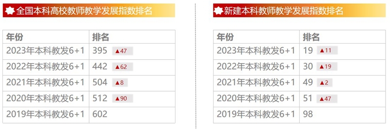 近日,中国高等教育学会发布2023版全国普通高校教师教学发展指数,我校教师教学发展指数再创新高,位列全国本科院校榜单第395位、全国师范学院榜单第48位、新建本科院校中位列第19位,连续五年持续提升。