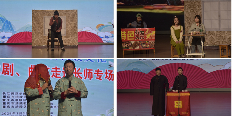 1月3日晚,以“赓续传统艺术 弘扬民族文化”为主题的戏曲专场节目在我校挐云学生活动中心精彩上演,现场师生共品了一场文化飨宴。本次活动由长江师范学院、重庆市涪陵区文学艺术界联合会主办,重庆市涪陵区戏剧家协会、重庆市涪陵歌舞剧团有限公司、重庆市涪陵区电影电视艺术家协会承办。