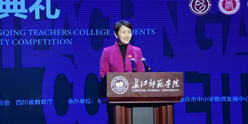 1月11日下午,川渝第二届师范生教学能力大赛颁奖典礼在我校拏云学生活动中心圆满落幕。四川省委教育厅一级巡视员胡卫锋、重庆市委教育工委委员、市教委副主任江鹏、我校党委副书记、校长杨燕滨出席典礼并致辞。重庆市教育科学研究院党委副书记、院长蔡其勇,我校副校长杨双、向小川,以及重庆市教委、四川省教育厅相关处室负责人,川渝各区县教委、参赛高校领导、获奖师生代表参加典礼。