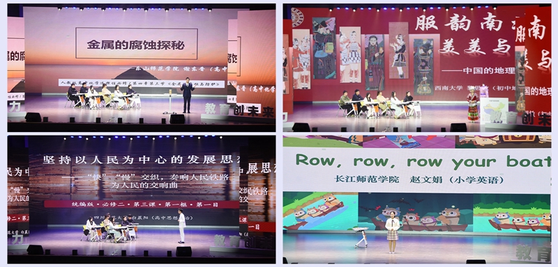 获奖选手代表及优秀指导教师代表在热烈的掌声中上台领奖,并现场展示了教学片断。