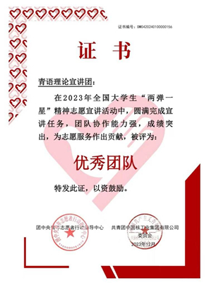 近日,由团中央青年志愿者行动指导中心、中国核工业集团有限公司联合开展的2023年全国大学生“两弹一星”精神志愿宣讲活动结果公布,我校政治与历史学院青语理论宣讲团获批优秀团队。