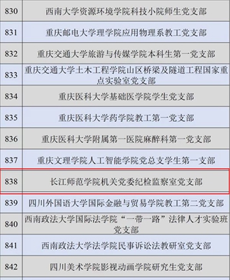 日前,教育部公布了第四批新时代高校党建示范创建和质量创优工作遴选结果,我校机关党委纪检监察室党支部入选“全国党建工作样板支部”。纪检监察室党支部于2019年立项校级样板支部,2023年入选重庆市党建工作样板支部,2024年获评全国党建工作样板支部,高质量党建工作实现“三级跃升”。
