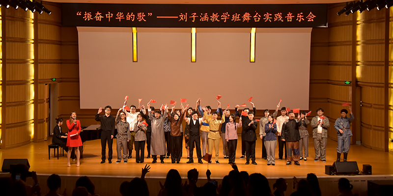 “振奋中华的歌”音乐会由党委宣传部、音乐学院指导,刘子涵教学班师生主演, 师生们用艺术实践成果向伟大的祖国献礼,同时也通过舞台表演实践,助推音乐专业学子传承红色基因、淬炼艺术修养。