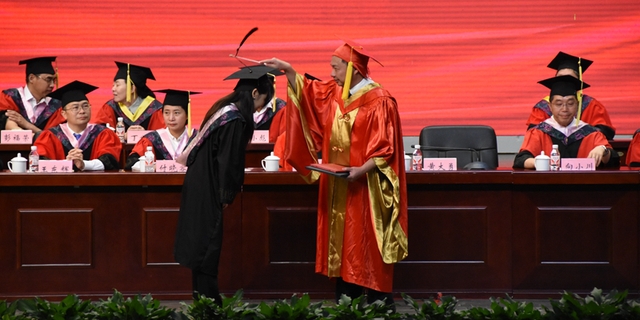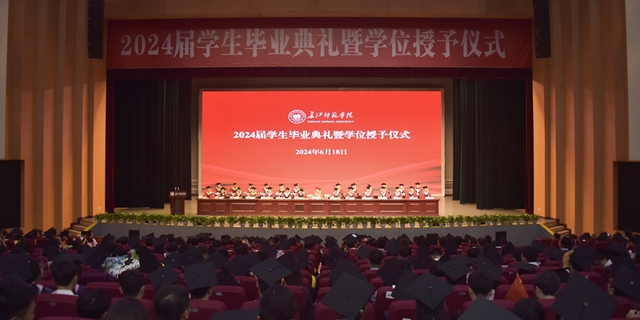 6月18日,2024届学生毕业典礼暨学位授予仪式在拏云学生活动中心隆重举行。党委书记黄大勇,副书记向小川,副校长杨双、李柳柏、冉隆锋,纪委书记、监察专员付晓容以及学位评定委员会委员出席典礼。