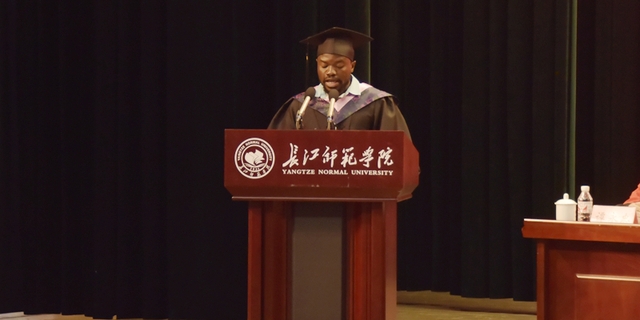 来自非洲刚果的留学生代表胜利被录取为北京师范大学硕士研究生。他代表全体留学生感谢中国政府和长江师范学院的关心帮助,表示将继续努力学习中国优秀文化,做中非友谊、中非文化交流的使者。