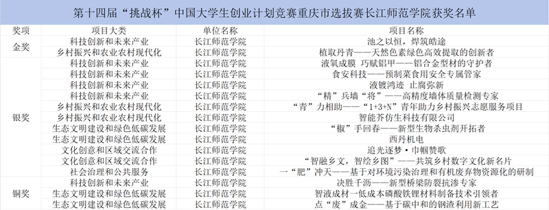 近日,由团重庆市委、重庆市教委、市人力社保局、市科协、市社科院、市学联联合主办的第十四届“挑战杯”中国大学生创业计划竞赛重庆市选拔赛结果揭晓,我校获金奖2项、银奖11项、铜奖3项。其中,项目《池之以恒,焊筑皓途》拟被推选参加国赛。