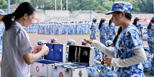 训练场外,学校医疗保障服务队的医生坚守岗位,各学院后勤保障点志愿者轮班值守,时刻保障卫生安全,提供贴心入微服务。