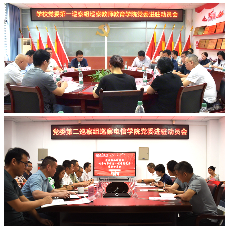 10月11日下午,第四届党委第六轮巡察进驻教师教育学院党委和电子信息工程学院党委工作动员会,分别在崇仁楼408、格物楼1210会议室召开。党委常委、纪委书记、监察专员、党委巡察工作领导小组副组长付晓容,党委常委、副校长许俊强分别出席会议并讲话。党委巡察工作领导小组成员单位,党委巡察办公室,党委第一巡察组、第二巡察组全体成员,被巡察学院党委领导班子及师生代表参加会议。会议由被巡察学院党委书记主持。